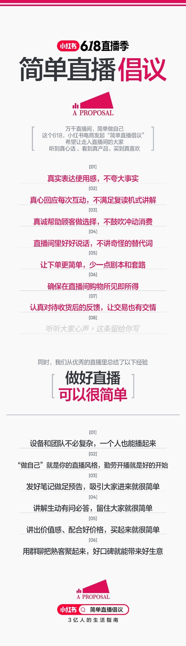 大促首日,小红书电商发布《简单直播倡议》,号召商家买手在开播中与用户真心交流、真诚推荐好物,让用户走进直播间时,像回到一家小店,听到真心话、看到真产品、买到真喜欢。