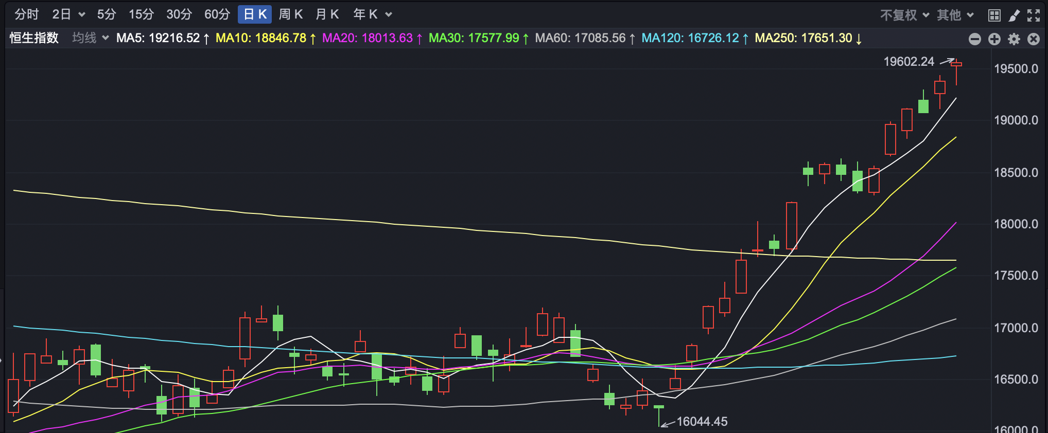 5月17日,港股市场继续强势走高。截至收盘,恒生指数报收于19553.61点,涨幅0.91%,周涨幅3.11%,再创年内新高。同时,恒生科技指数报收于4112.59点,涨幅0.99%,周涨幅3.79%。